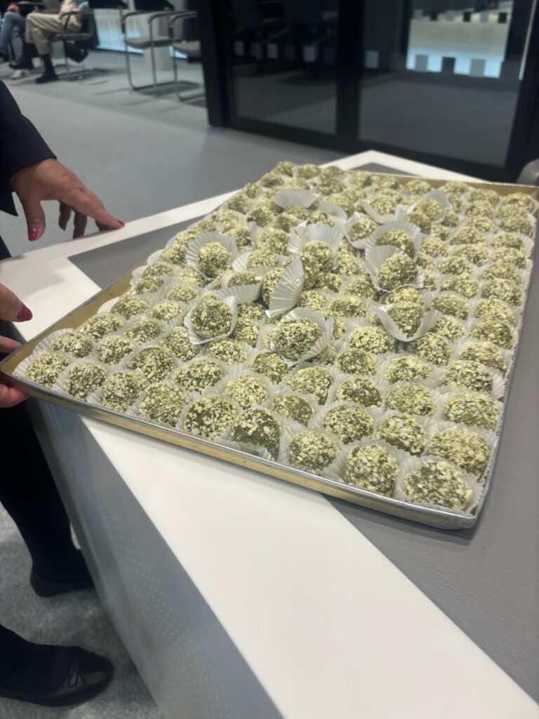 Am 08. Oktober habe ich die Einladung zum Verzehr der legendären Corona-Kugeln von meiner Fraktionskollegin Veronika Bode angenommen – lecker und mit einer Anekdote dahinter: in der Bäckerei des Vertrauens von Veronika Bode wurde während der Corona-Zeit für die Rumkugeln versehentlich Papageien- Kuchenteig verwendet. Farblich sahen diese dann natürlich anders aus. Aus der Not heraus hat die Bäckerin sie dann Corona- Kugeln genannt. Eine schöne Erinnerung daran, dass aus Fehlern oft neue, schöne Ideen entstehen. ![]()