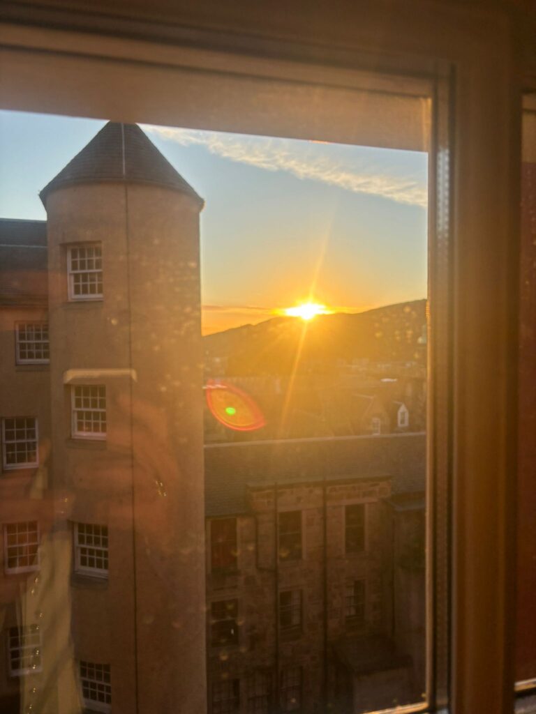 An Tag 2 stand heute Vormittag das Treffen mit dem schottischen Petitionsausschuss auf dem Programm. Der Tag im angeblich so regnerischen Schottland begann mit einem traumhaften Sonnenaufgang.