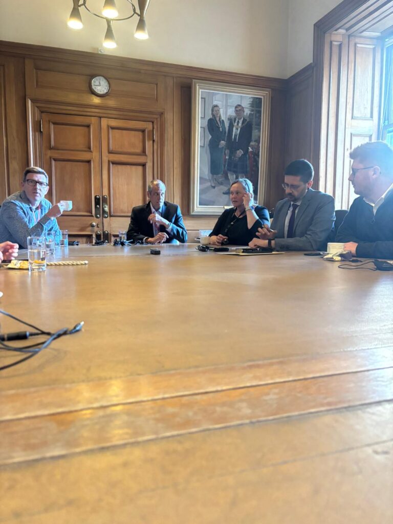 Nach der kurzen Mittagspause ging es dann zu einem Gespräch mit dem City of Edinburgh Council. Interessant war hier, dass es dort auch im kommunalen Bereich ein Petitionsrecht gibt. Landen Petitionen jedoch an der falschen Stelle – sprich: bei kommunalen Sachen im Parlament oder umgekehrt – gibt es keine Durchlässigkeit im System. Die Petition muss dann faktisch neu gestellt werden, am richtigen Ort.